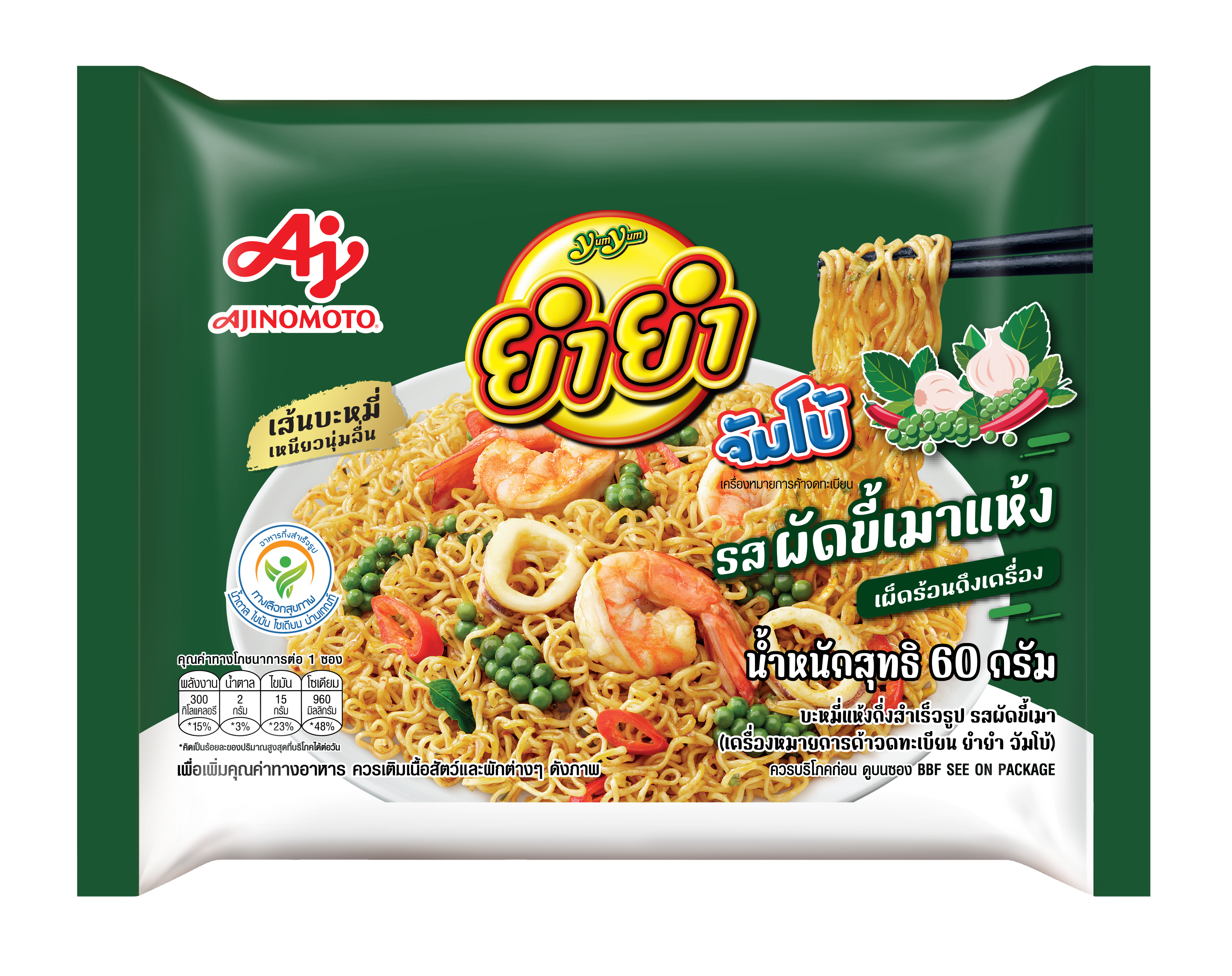 ยำยำ จัมโบ้ รสผัดขี้เมา (แบบแห้ง) สูตรใหม่ เส้นเหนียวนุ่มลื่น อร่อยเต็มรสเครื่องเทศในแบบผัดขี้เมา ลิ้มรสความอร่อยถึงเครื่องผัดขี้เมารสร้อนแรง เต็มรสชาติทั้ง กระเทียม พริกไทย ใบกะเพรา ที่ผ่านการผลิตอย่างพิถีพิถัน แล้วนำมาบดให้ละเอียดเป็นเนื้อเดียวกันจนได้เครื่องปรุงผัดขี้เมารสร้อนแรงที่เต็มรสเครื่อง เทศ อร่อย เผ็ด จัดจ้าน จากส่วนผสมจริง คุณจะอร่อยเต็มอิ่ม มีความสุขที่สุดได้ในทุกๆวัน